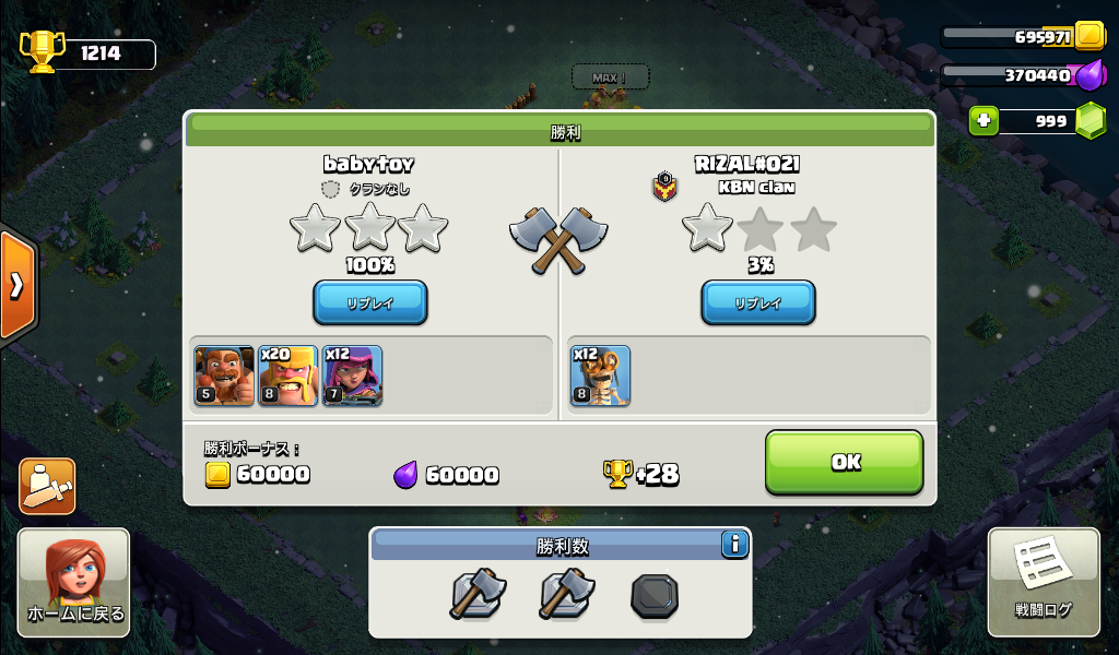 クラクラ(クラッシュオブクラン:Clash of Clans)のプレイブログ。パート3。