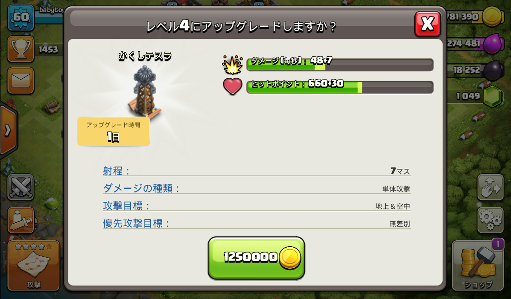 かくしテスラをレベル4にアップグレードしました。