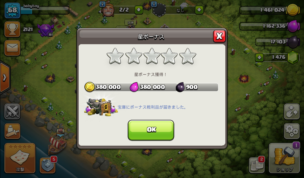 星ボーナスをゲットしました。