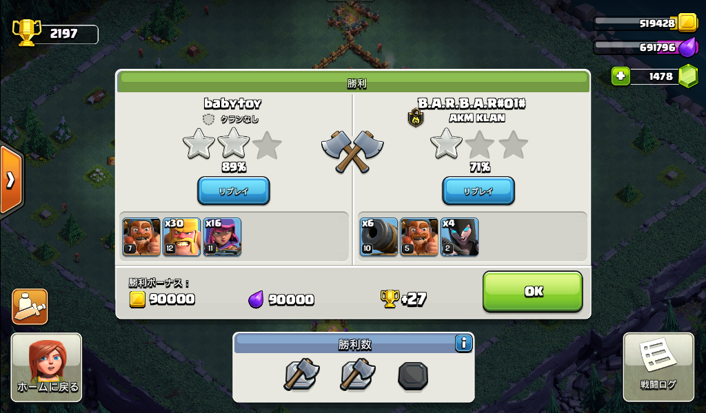 クラクラ(クラッシュオブクラン:Clash of Clans)のプレイブログ。パート3。