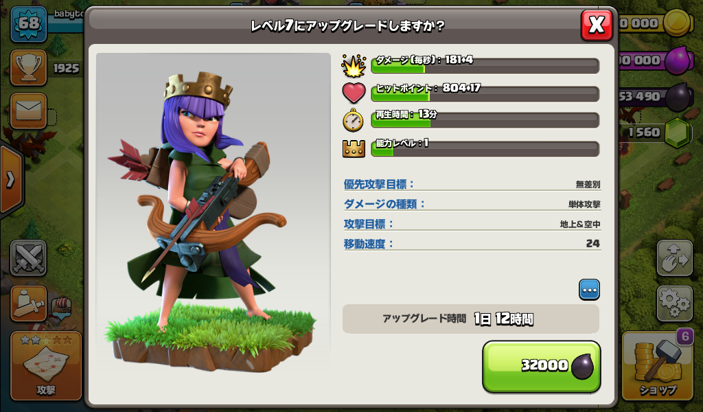 アーチャークイーンをレベル7にアップグレードしました。