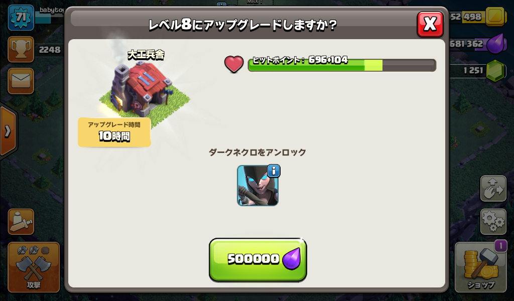 大工兵舎をレベル8にアップグレードしてダークネクロをアンロックしました。