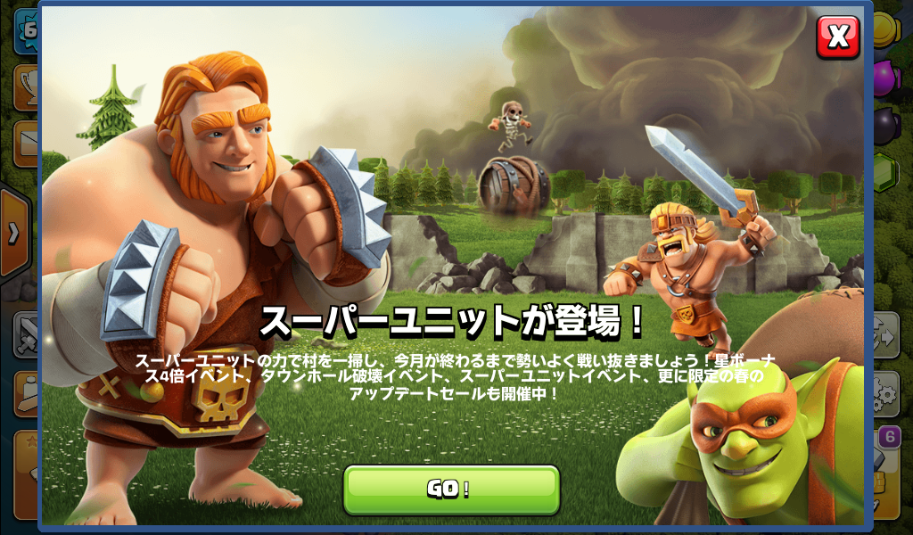 星ボーナス4倍イベント、タウンホール破壊イベント、スーパーユニットイベント、