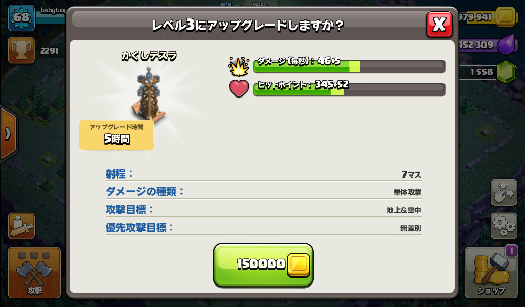 大工の拠点のかくしテスラをレベル3にアップグレードしました。